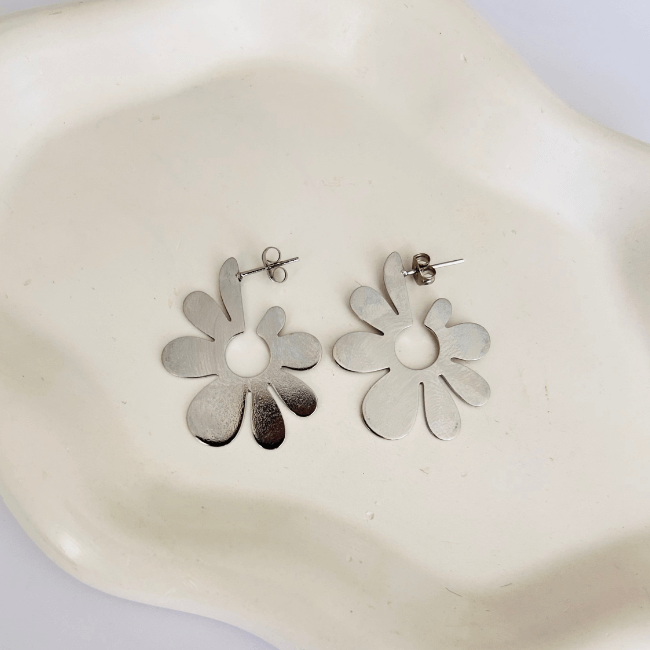 Brinco Argola Flor em Aço Inoxidável