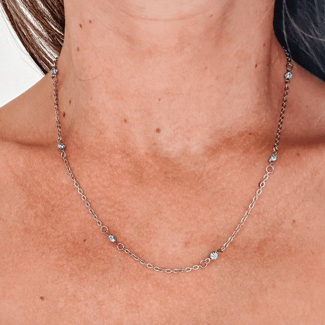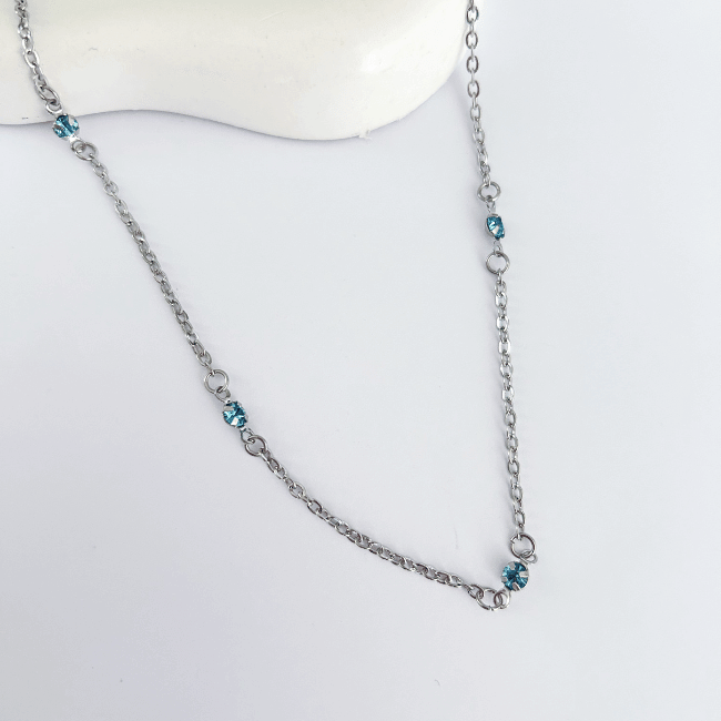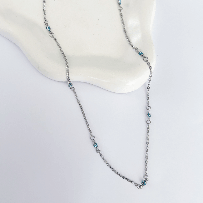Colar com Pedrinhas Azuis em Aço Inoxidável