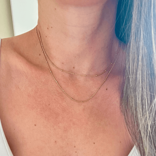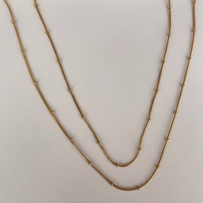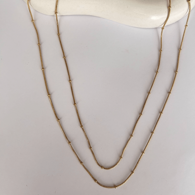 Seja o primeiro a avaliar “Colar Duplo Dourado Mini Bolinhas em Aço Inoxidável”
