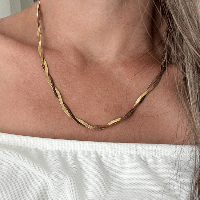 Modelo: Colar Fita Trançado Dourado