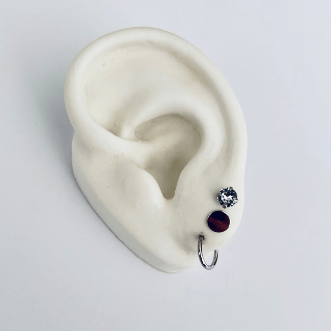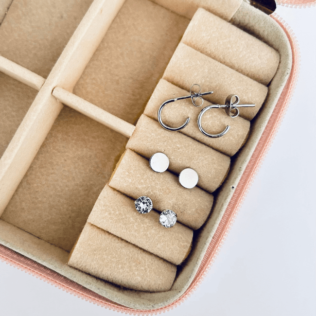 Kit Brincos Círculo, Zircônia e Argola no Aço Inoxidável