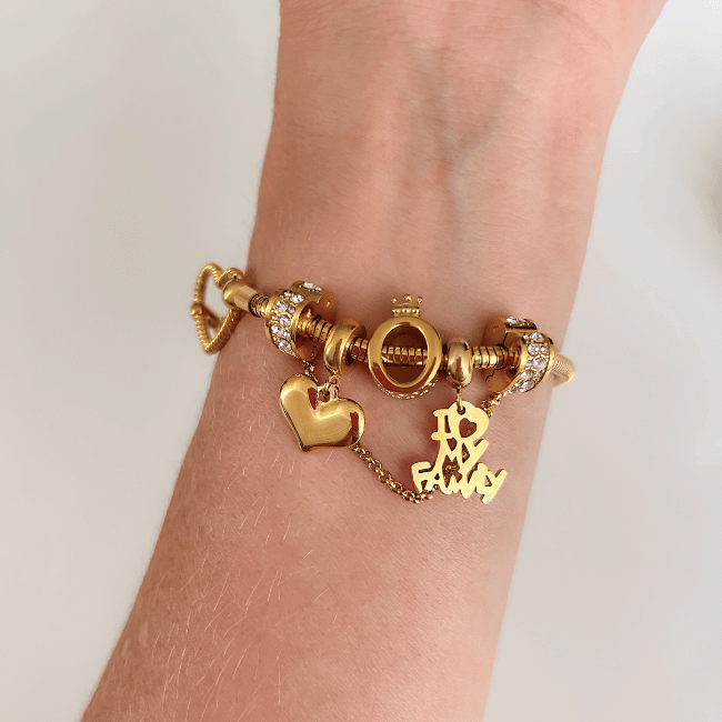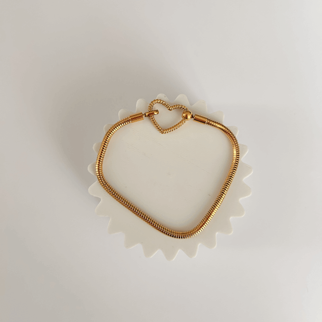 Modelo: Pulseira para Berloques com Fecho de Coração na Cor Dourada;
